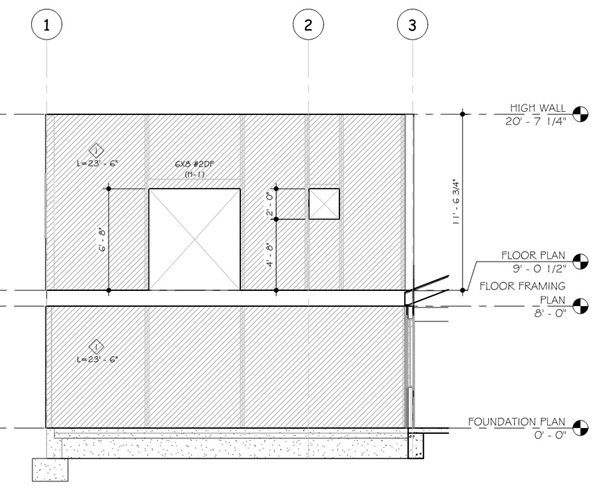 A comparision is illustrated below. The "Before" figures represent the shear walls analyzed as full height, segmented walls. The "After" figures represent the entire wall analyzed as shear walls which incorporate openings.